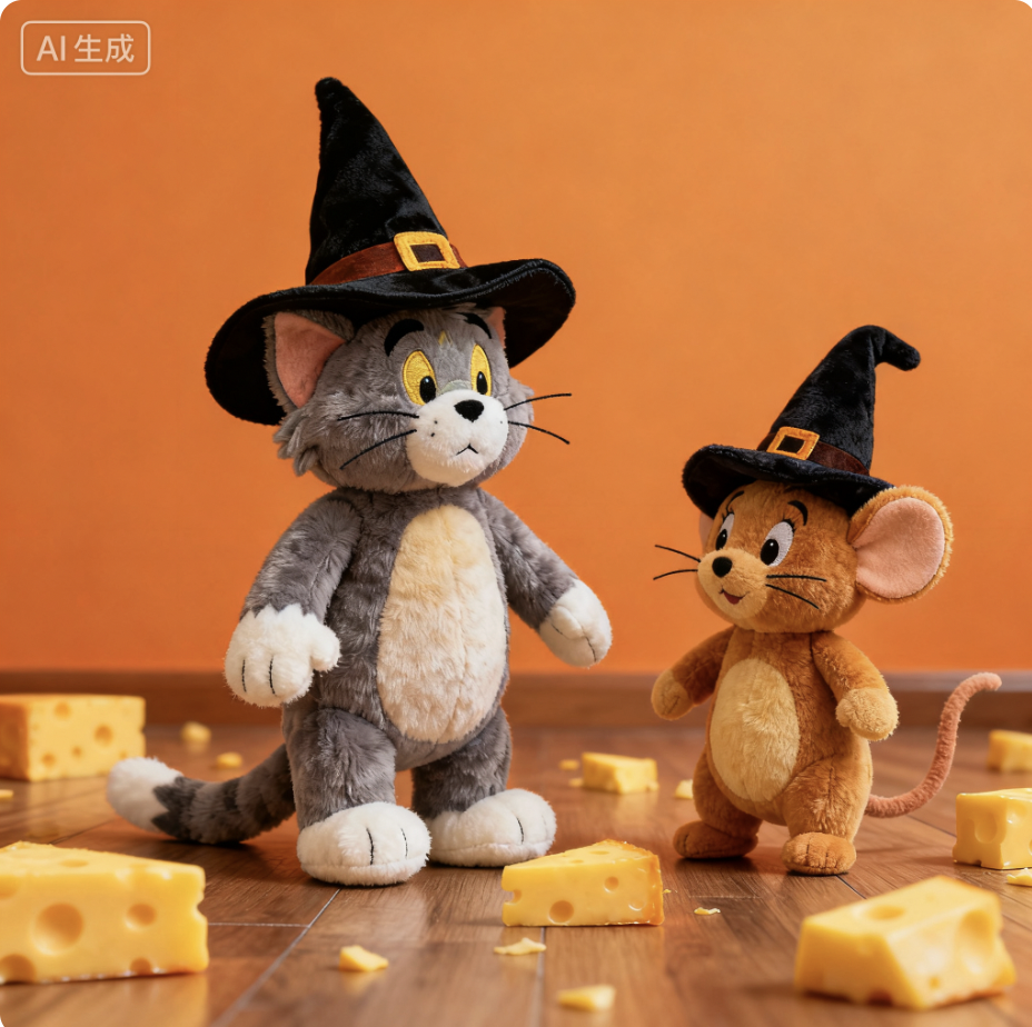 想象一下:你最爱的IP形象戴上尖顶巫师帽、披着黑红撞色斗篷,背景铺陈橘黑渐变(南瓜灯微光+飘着小幽灵),再点缀几颗糖果或蝙蝠元素,神秘又可爱的捣蛋氛围直接拉满!