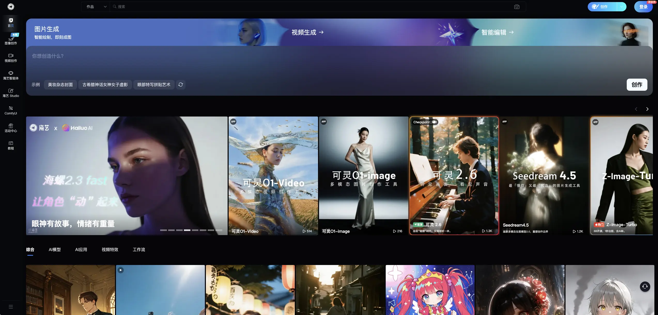 海艺AI作为一个综合性创作平台,其功能丰富且强大,主要包括:
