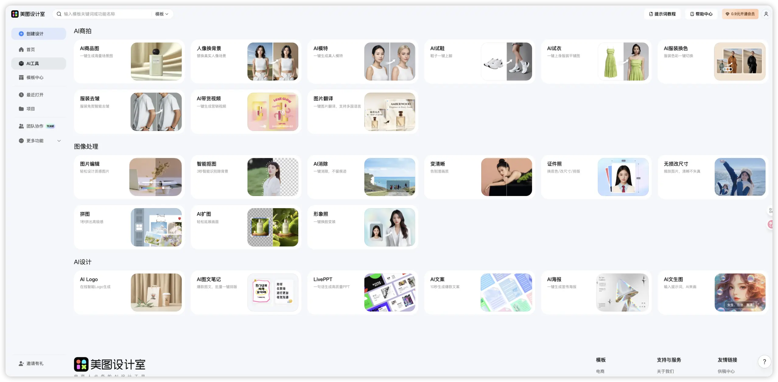 美图设计室提供了丰富的AI设计功能,主要包括: