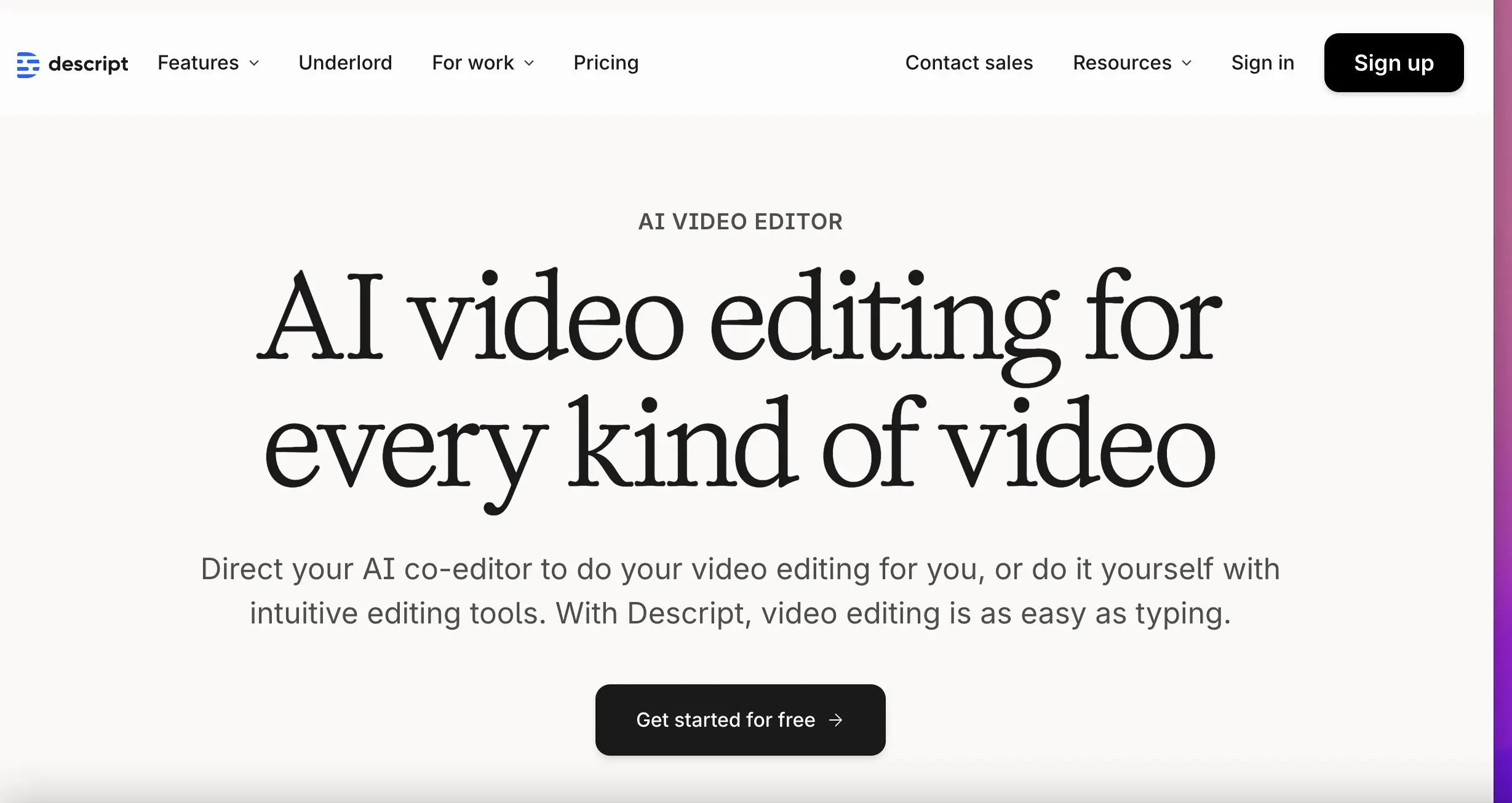 Descript是一个创新的AI驱动视频编辑平台,彻底改变了传统的视频编辑方式。该平台的核心理念是将视频编辑变得像编辑文档一样简单,用户可以通过编辑转录文本来直接修改视频内容。Descript集成了先进的AI技术,包括行业领先的自动转录系统、AI语音克隆功能、AI头像生成和智能视频生成工具。平台不仅支持视频编辑,还提供强大的播客制作功能,包括多轨道音频编辑、屏幕录制和协作录制室等专业工具。