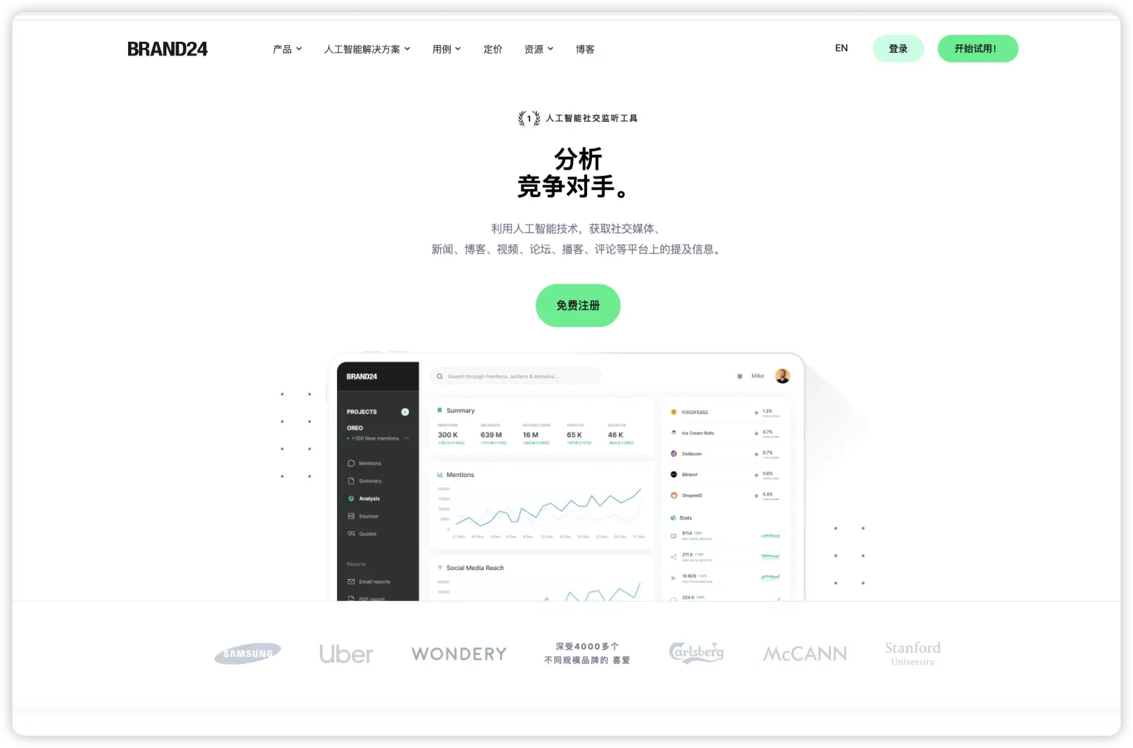 - 竞争情报:追踪竞争对手的品牌提及和营销活动