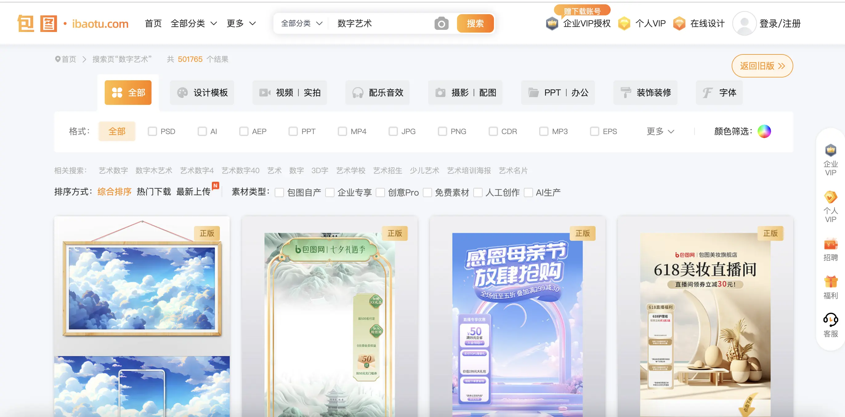 包图网数字艺术素材适用于多种商业设计和创作场景: